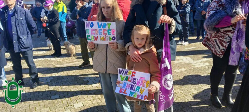 Especialmente aplaudidas, las novedosas palabras de tres niños que leían sus propios textos. Primero Diego, del colegio Navaliegos, quien daba las «gracias a las mujeres que luchan cada día por un futuro mejor» y de quienes decía que son «muy amorosas». Luego, Valentina, alumna del colegio “Valentín García Yebra”, alabó el papel de las mujeres en la historia antes de mostrar la convicción de que si «a las niñas nos dan las mismas oportunidades, podremos ser lo que queramos. Completó los discursos infantiles Anaís, del colegio de Educación Especial “Bergidum”, para celebrar la fuerza, la valentía y la capacidad de las mujeres y reafirmar un compromiso de «avanzar juntos en igualdad e inclusión». Hubo muchos aplausos después de esas frases. Y entre quienes aplaudían, varias niñas que exhibieron coloridos carteles.