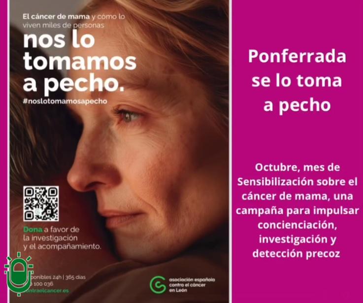 En Ponferada, decenas de comercios han adornado sus escaparates con elementos de color rosa y con carteles que siguen el lema «Nos lo tomamos a pecho». Es una acción conjunta impulsada por la Asociación contra el Cáncer, que ha encontrado apoyo entre los propietarios de las tiendas de la ciudad, el Ayuntamiento de Ponferrada y las autoridades sanitarias.