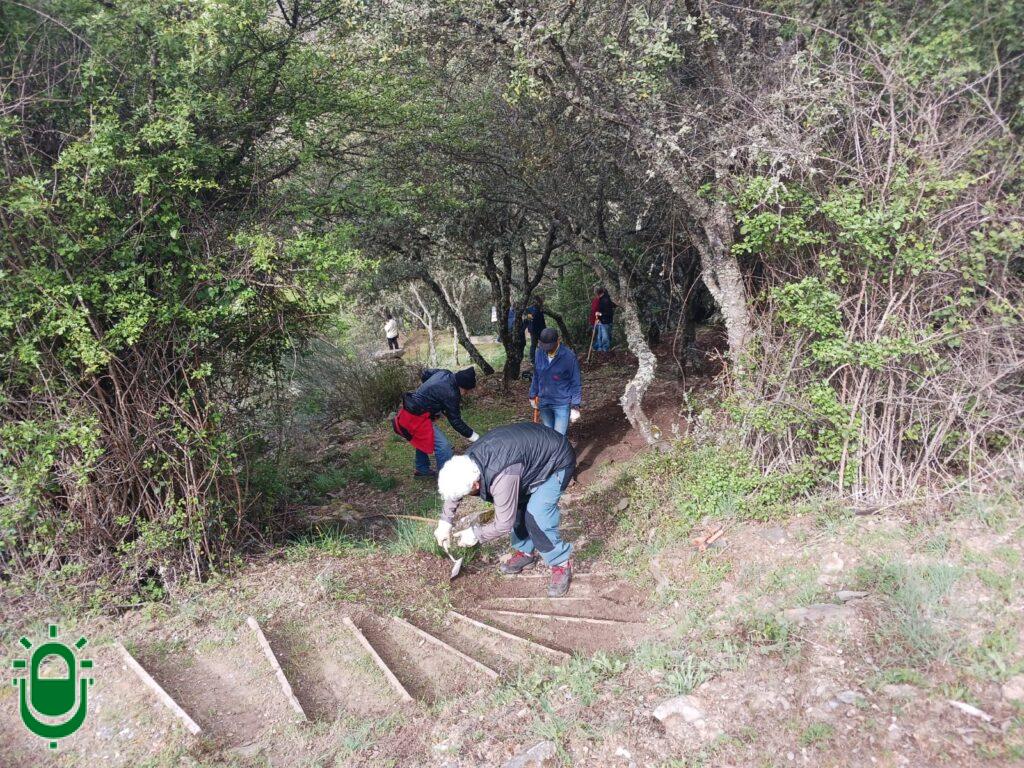 Mientras, en la Ruta de los Petroglifos, se intervino en una de las escaleras que facilita la subida o el descenso por la ladera.
