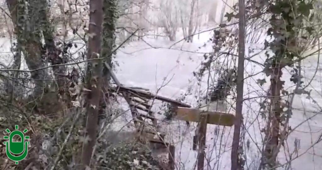 La Junta mantiene el nivel de alerta 2 por desbordamiento de ríos en el Bierzo. El Sil se llevó el puente colgante de Villaverde de la Abadía