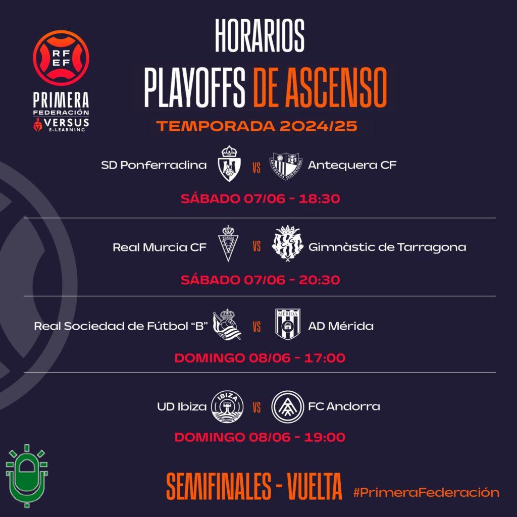 El partido de vuelta de esta primera eliminatoria por el ascenso a la categoría de plata del fútbol español se disputará el sábado siguiente, 7 de junio, a las seis y media de la tarde, en el estadio del Toralín de Ponferrada, según ha comunicado oficialmente la Real Federación Española de Fútbol.
